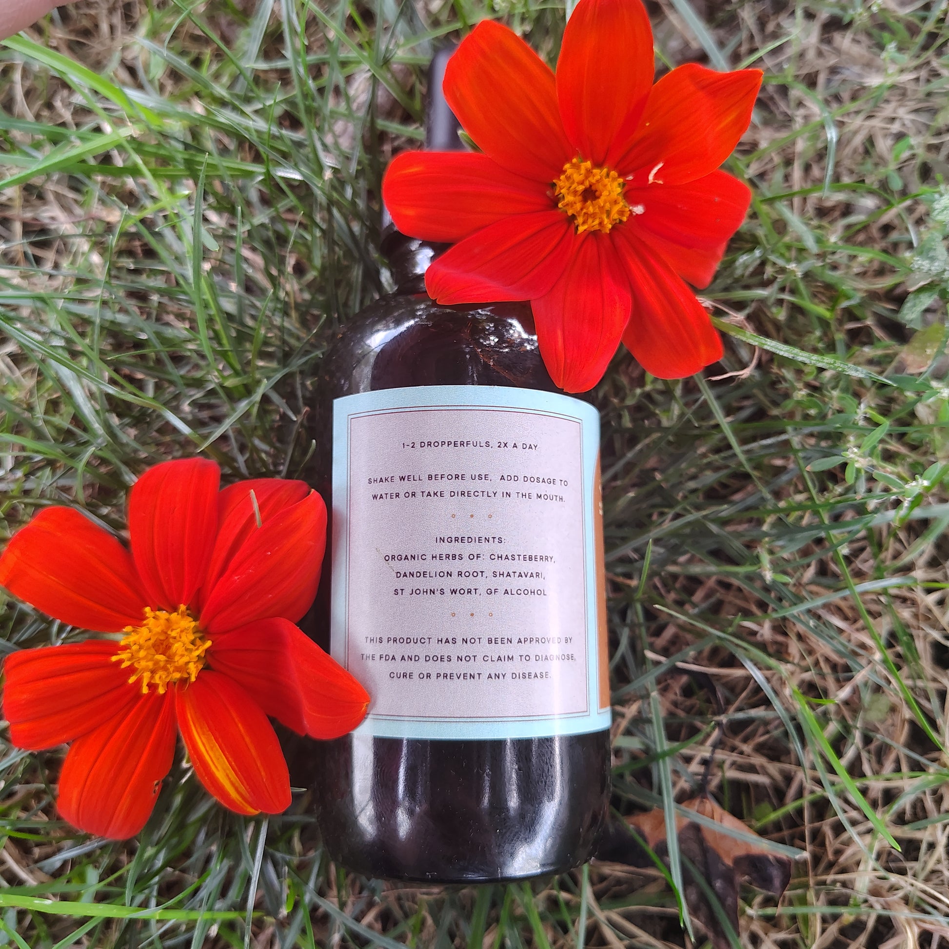 Ingredients: Organic herbs of chasteberry (vitex), dandelion root, shatavari and st. John's wort, GF alcohol